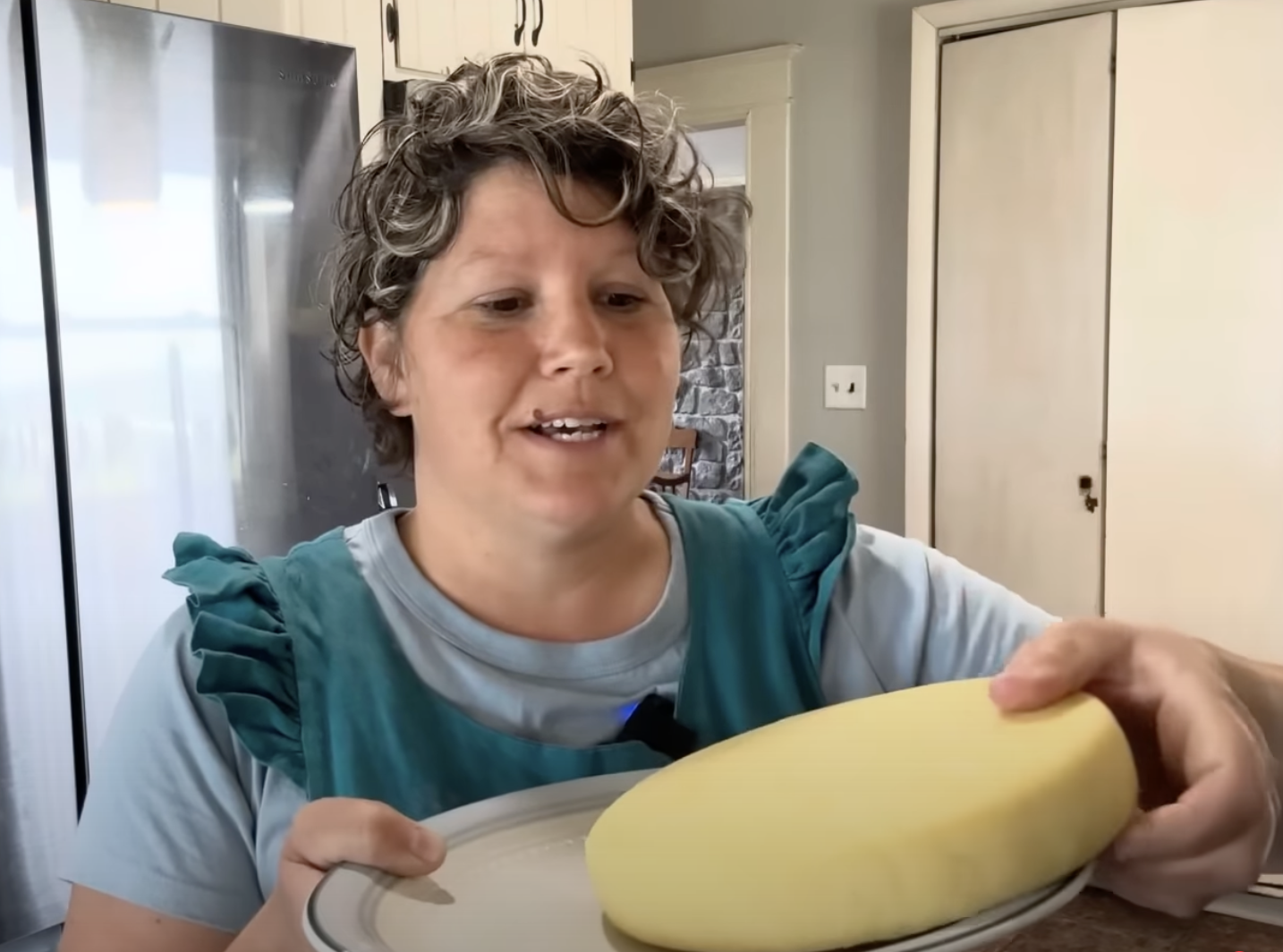 - Remove from press, turn the curds (now pressed into a wheel) over, and put them back into the press. Put back into the warm space and this time press with 20lbs pressure for 20 minutes.